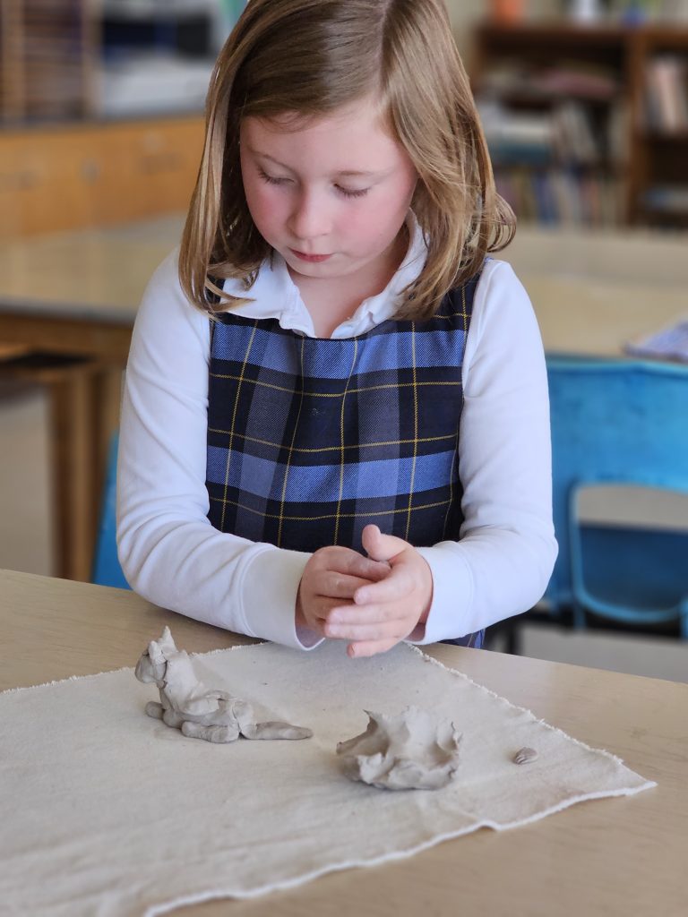 Students take a short walk to the art studio at the north campus to learn the Elements of Art and Principles of Design, starting with the basic concepts (color, line, shape, texture, space) and progress into more complex techniques and principles (contrast, balance, rhythm, emphasis, composition, dimension) as they enter new grades. They will explore the Visual Arts through drawing, painting, sculpture, collage and ceramics.